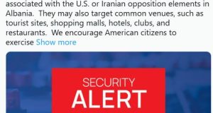 Американската амбасада во Тирана издаде итно предупредување до своите граѓани поради можни напади од групи поврзани со Иран. Потенцијалните цели вклучуваат локации поврзани со Америка, но и места каде што престојуваат туристи – од хотели до трговски центри. „Групите поврзани со Иран може да се обидат да ги таргетираат субјектите поврзани со САД или иранските опозициски елементи во Албанија. Тие ...