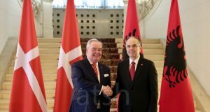 Фото: ATSH Претседателот Бајрам Бегај денес со официјална церемонија го прими принцот и голем мајстор на Суверениот воен ред на Малта, Фра Јонн Т. Дунлап. Официјалната церемонија на прием со воени почести се одржа во Палатата на Бригадите. Принцот и голем мајстор на Суверениот воен ред на Малта, Фра Јонн Т. Дунлап, престојува во официјална посета на Тирана. По церемонијата ...