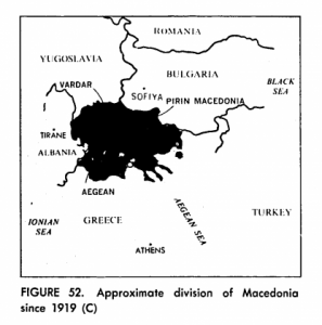 Секое малцинство подетално се разгледува во извештајот, а за Македонците се вели дека најголемиот дел од нив живеаат во погранините делови со Југославија и Грција, и дека еден дел од овие Македонци мечтаат за обединета Македонија.