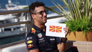 За Верстапен нема никакви додавки – само Македонија! Погоди од прва! Пред трката за големата награда на Монако, двајцата возачи на “Ред Бул”, Рикардо и Верстапен ги забавуваа обожавателите на Формула 1. Еден од предизвиците беше да се погоди кое чие државно знаме е, па во листата се појави и македонското знаме. Рикардо покажа, Верстапен експресно одговори “Маcedoniaaa”.
