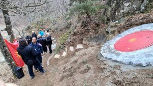 На церемонијата, во присуство на поголем број жители на Гевгелија, Богданци и Валандово, поздравен говор одржа претседателот на СМК, Тодор Петров, кој, меѓу другото, истакна дека спомен-обележјето „Географски центар на Македонија“ може да прерасне во семакедонско култно место.