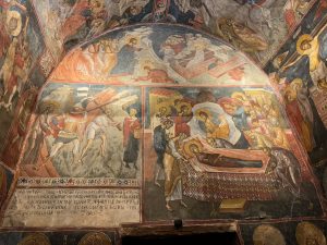 Третиот натпис датира во 1607 година, кога е насликана надворешната западна фасада. Внатрешноста на црквата, е целосно живописна и е доста позната по ѕидните фрески од Византискиот палеолошки стил.