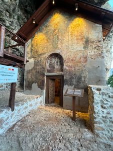 Пештерската црква Света Богородица која со својот фрескоживопис отскокнува од другите пештерски цркви расфрлани по бреговите на Преспанското и Охридското Езеро. Оваа црква низ времето претрпела измени. Тоа го знаеме од трите сочувани натписи кои се наоѓаат на неа.