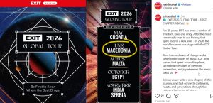 Според објавата на официјалниот Инстаграм профил на EXIT, првите дестинации за 2026 Exit Global Tour година се Египет, Индија, Малта, Хрватска, Македонија и Србија.