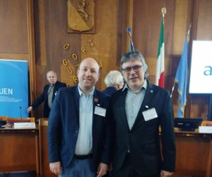 Претседателот на македонско друштво “Илинден”-Тирана, Никола Ѓурѓај за време на 28-тиот семинар на работната група на словенските малцинства во Европа при ФУЕН, што се одржa од 20 до 23 ноември 2025 година во Горица, Италија, најголемиот собир на словенските малцинства во Европа.