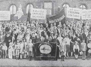 Уште во далечната 1922 година, Македонците во САД демонстрирале за независна Македонија. Демонстрациите снимени на видео клипот (на крајот од статијата) се организирани од македонски иселеници кои повикаа на обединета Македонија и дека окупаторите Грција, Бугарија и Србија треба да се повлечат од Македонија. Поделбата на Македонија е резултат на Балканските војни во 1912 година, оваа поделба е легитимирана со “мировните преговори во Букурешт” во 1913 година од страна на големите сили. Емиграцијата се организирала во т.н. Македонска политичка организација (МПО), македонска политичка организација на македонската дијаспора во САД. Оваа организација е основана во 1922 година во Форд Вејн.