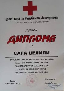 Прва награда на литературен конкурс од Црвен крст за Сара Џелили Македонка од Голо Брдо