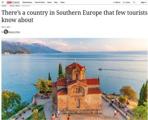 Американскиот медиум „Си-ен-ен“ пишува за Македонија, како европска туристичка дестинација, што, според медиумот, е една од оние кои неправедно остануваат во сенка на најпопуларните туристички центри. Во најновото издание на туристичкиот билтен на „Си-ен-ен Травел“, Македонија е опишана како „драматично планинска дестинација“, со природни пејзажи што комбинираат зелени долини и врвови покриени со снег, со сончева клима и разновидна гастрономија, локално специфична и многу поврзана со традицијата.